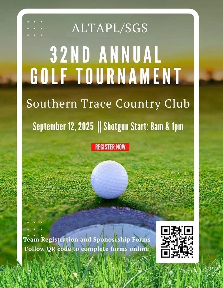 We are excited to announce the upcoming ALTAPL/SGS Golf Tournament to be held at Southern Trace on Friday, September 12, 2025.
